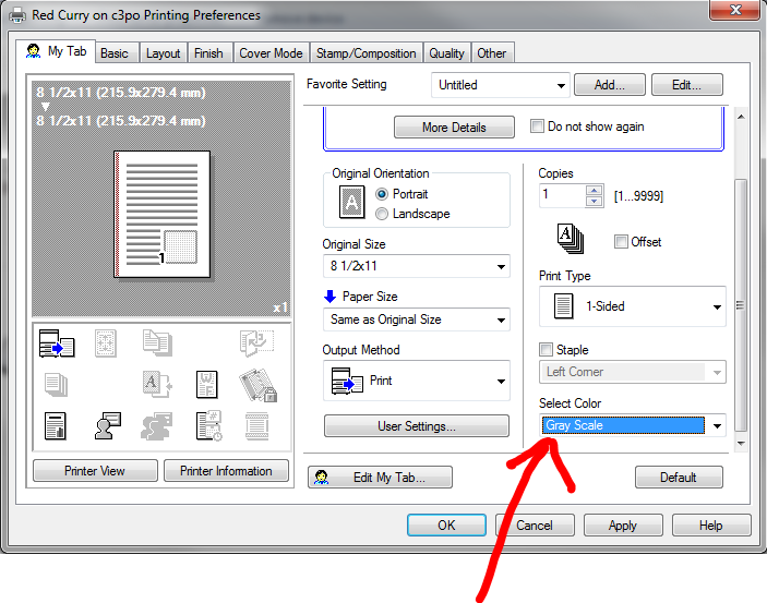 Next time you print to Red Curry you will be printing in color unless your change back to Public User in the Account Track window. Simply follow the steps above and switch back to the Public User.
