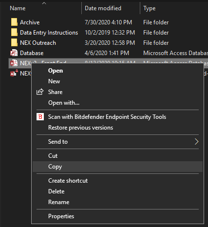 Find the NEXv2_Front End and right click on it and then select copy from the pop out menu.