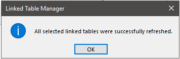 That is it, Click the OK button and close the ‘Linked Table Manager’ window.