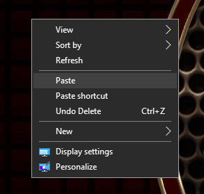 Now in an empty space on your desktop right click and select Paste from the pop out menu.