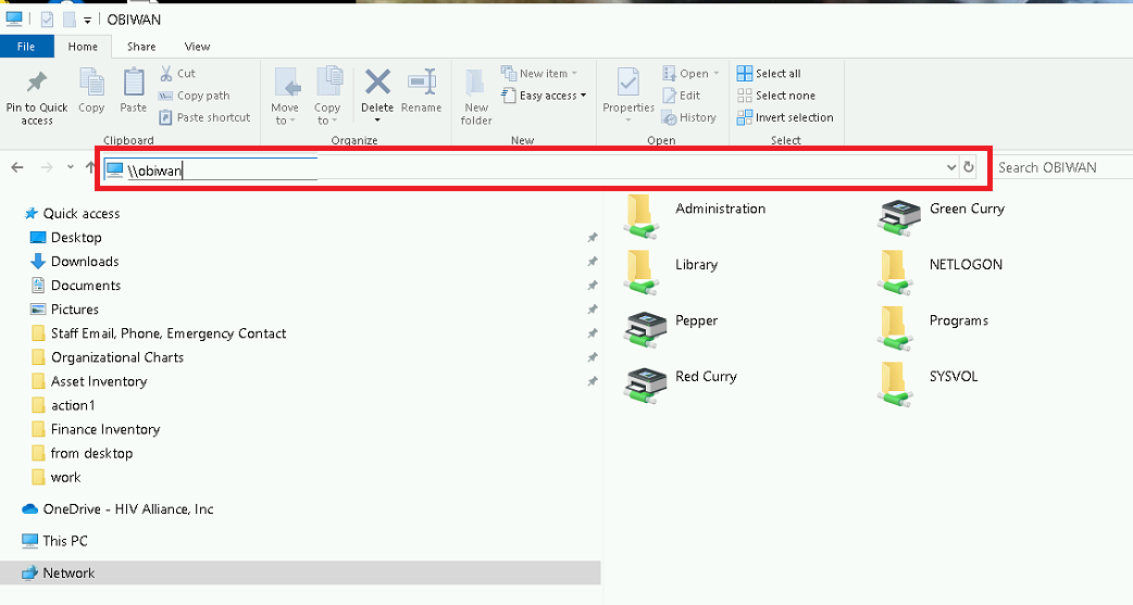 Step 3: In the address bar type: \\obiwan or \\172.16.0.4