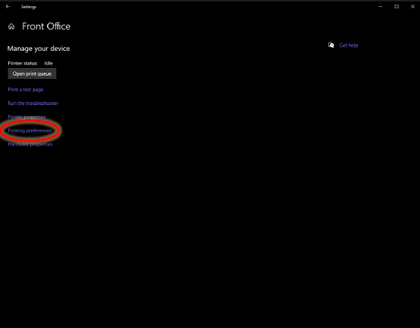 3. On this page, click “Printing preferences.”